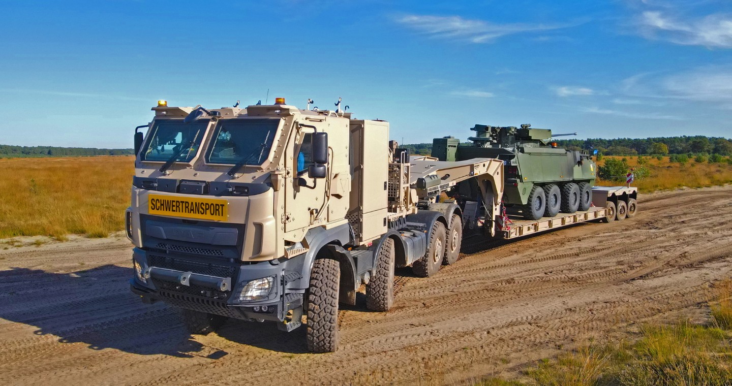 Noch im selben Jahr wurde ein weiterer Auftrag für neun Sattelzugmaschinen-Anhänger-Kombinationen für den Schwerlasteinsatz erteilt, die für die schnelle und sichere Fahrzeugbergung in Konfliktgebieten ausgelegt sind.