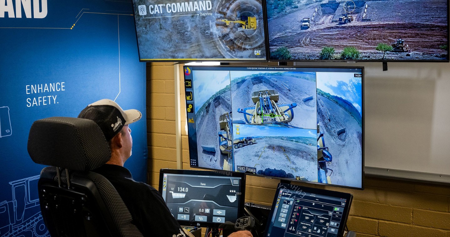 Cat Command ist kompatibel mit anderen Baumaschinen wie Baggern und Planierraupen, die ebenfalls darüber gesteuert werden, und erlaubt den Betrieb mehrerer Maschinen durch wenige Bediener.